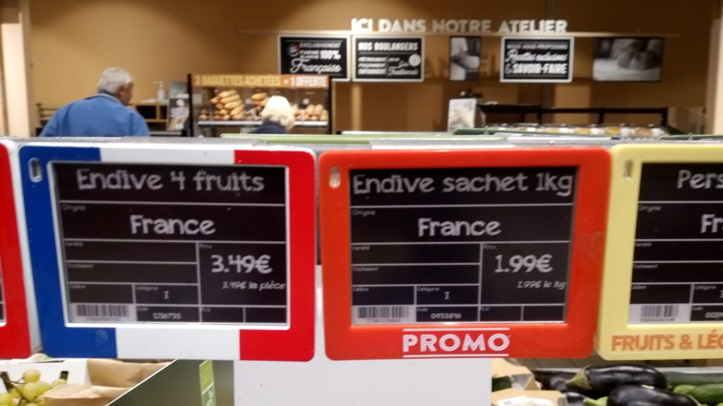 And it gets intense. So, next up, Frank’s in France. Still got to get those groceries. He’s on the hunt for some endives. Right. Last week, bag of five, €2.49. Reasonable. This week, same store, same endives. €3.49. What?